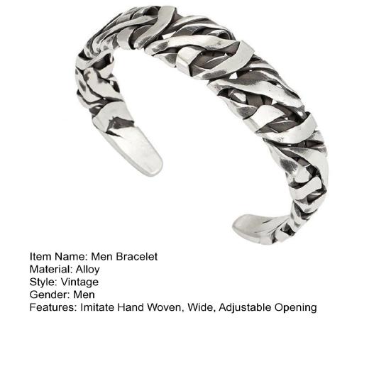 Мужской браслет в стиле ретро, имитирующий ручной работы, текстурированный, с широким регулируемым отверстием, подарок для мужчин