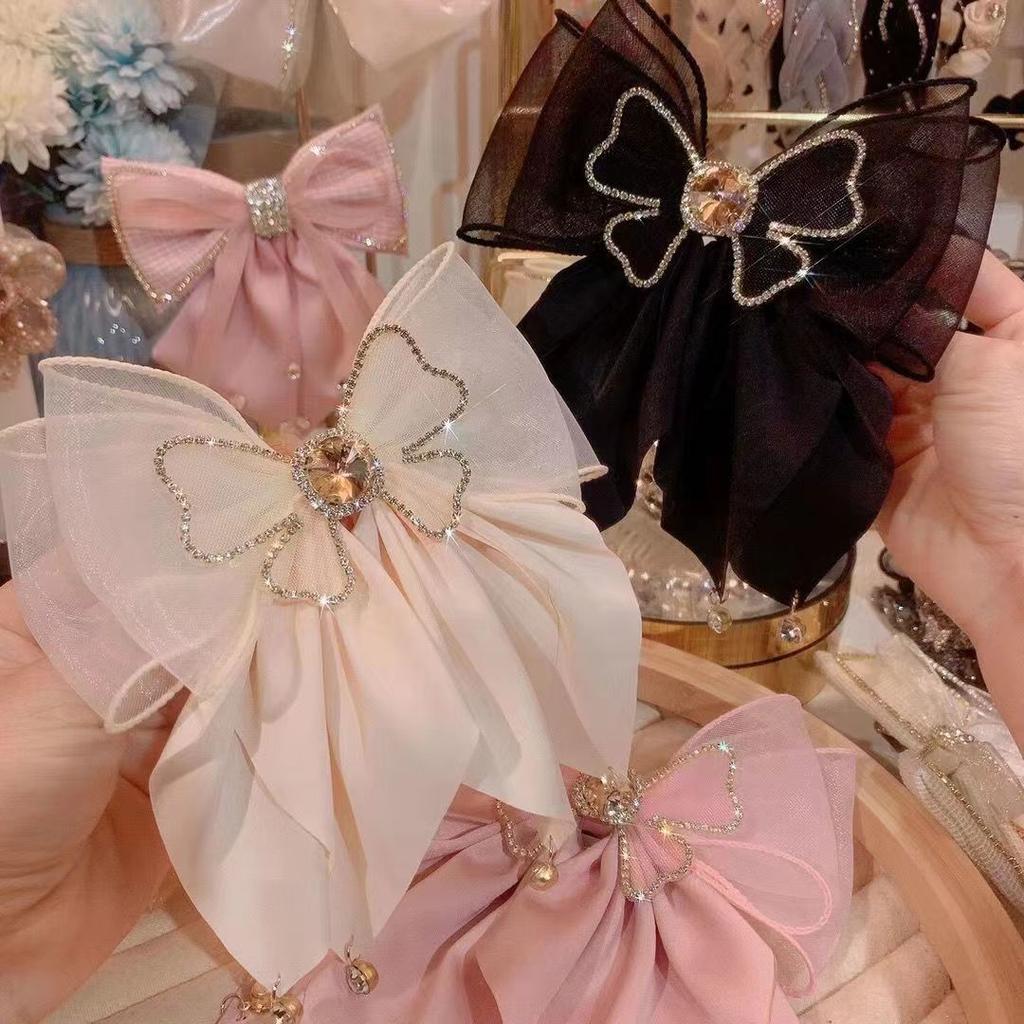Милая модная заколка для волос принцессы для девочек, заколка для волос с большим бантом и стразами для женщин, головные уборы, женские заколки для волос, женские аксессуары для волос