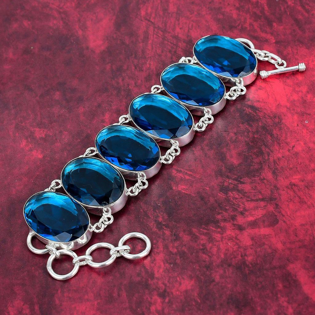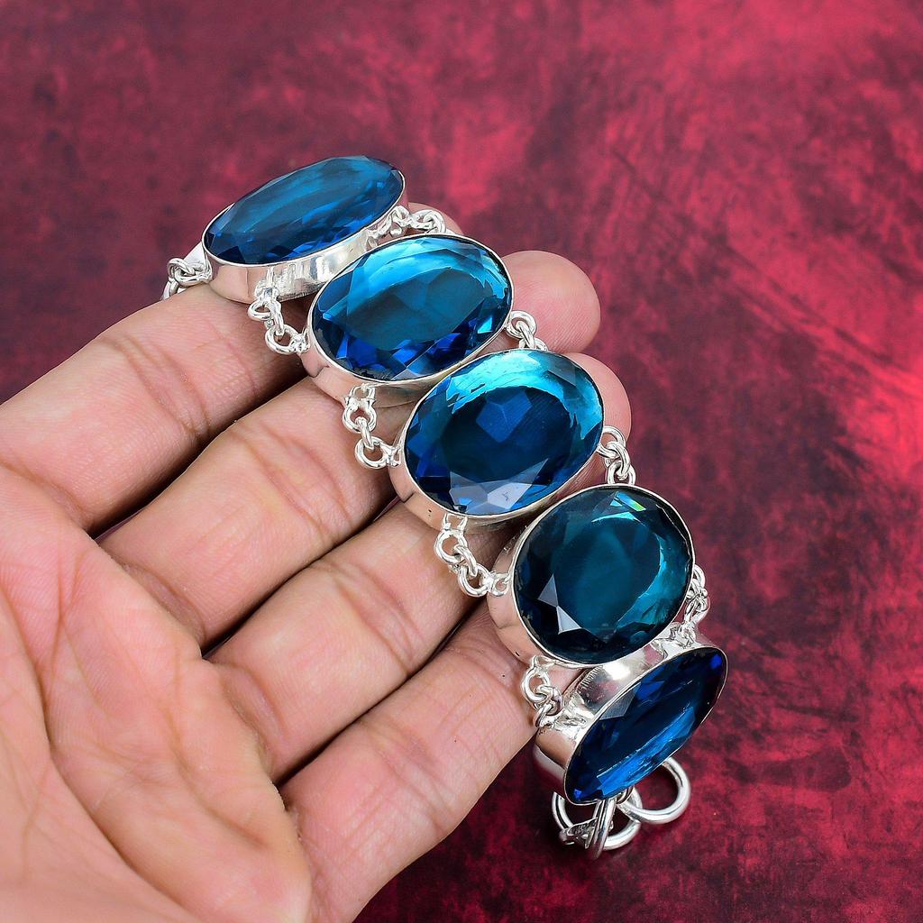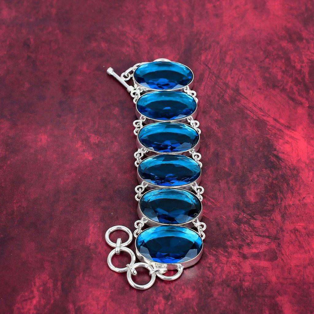 Ювелирные изделия-браслет с граненым синим топазом, Ювелирные изделия из стерлингового серебра 925 пробы, удивительные украшения из драгоценных камней для нее, Браслет с топазом ручной работы для любви