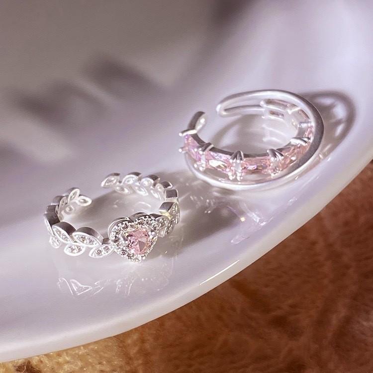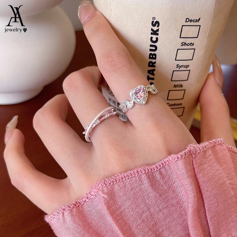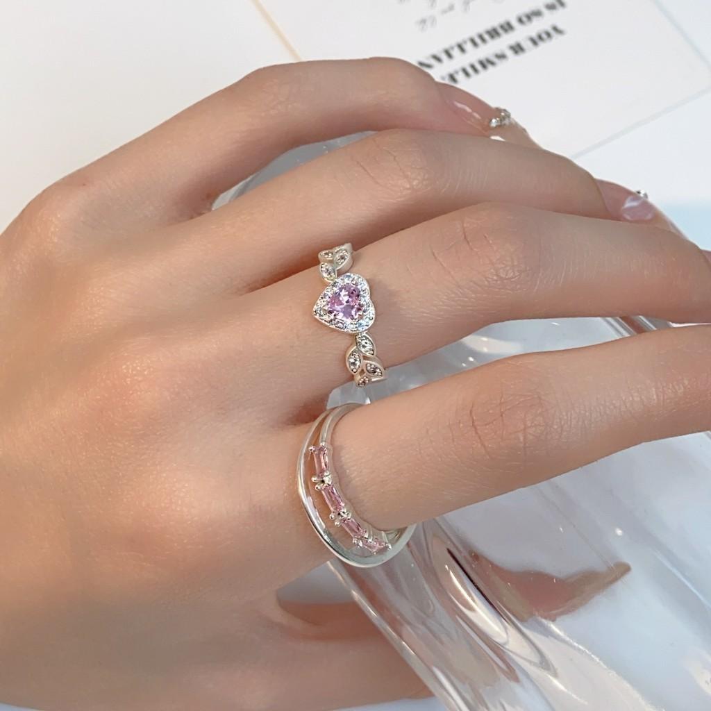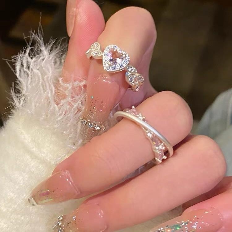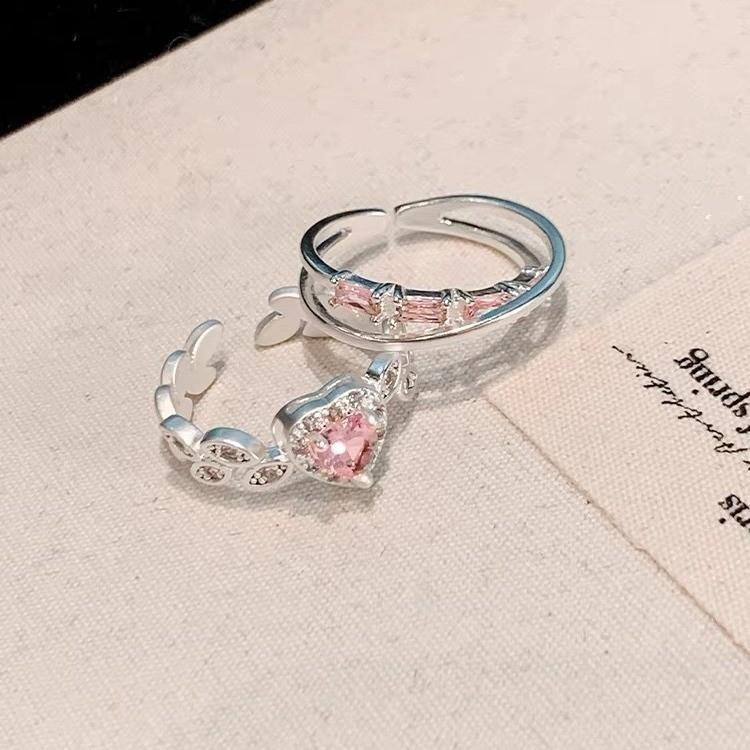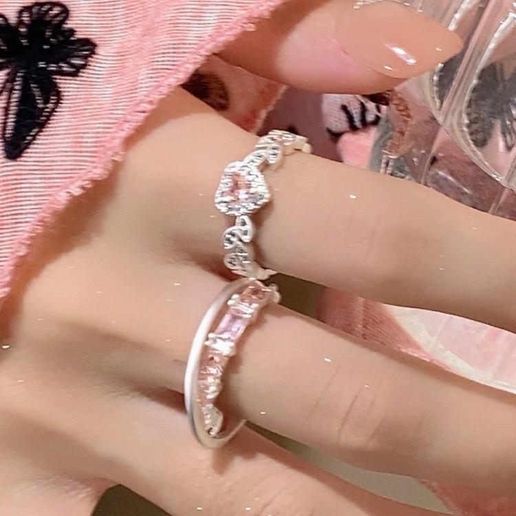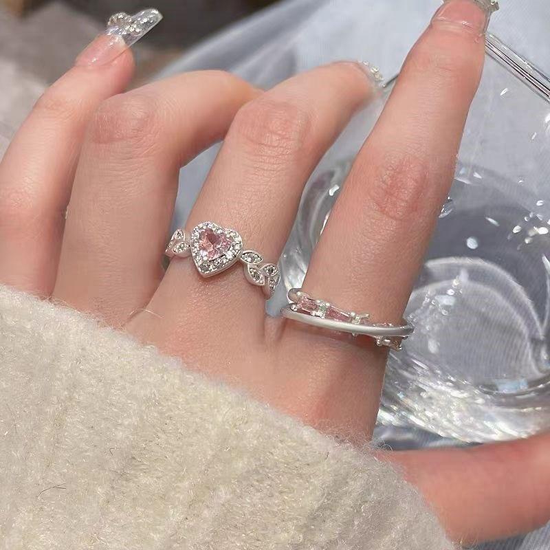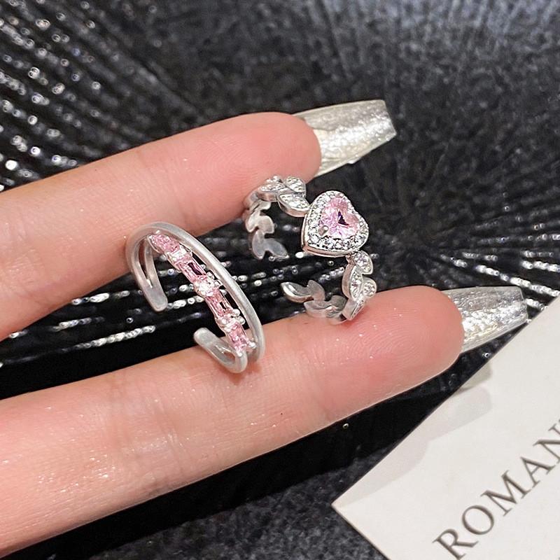 iF ME 2 шт./компл., набор сладких открытых колец для женщин, роскошные серебряные кольца с розовым кристаллом и сердцем, аксессуары, ювелирные изделия
