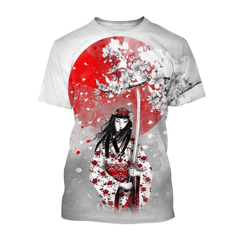 Мужская футболка с японским искусством гейши, летние винтажные топы, уличная футболка, повседневные футболки с короткими рукавами и 3d принтом