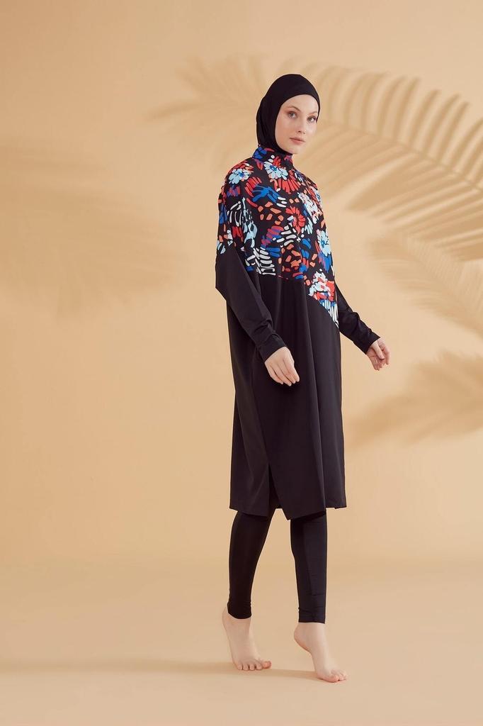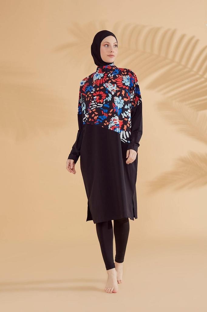 Черный полностью закрытый купальник-хиджаб с цветами-парашютами Черный полностью закрытый купальник-хиджаб с цветами-парашютами M2313 Поскольку изделие имеет водоотталкивающее покрытие, оно быстро высыхает при выходе из воды и не прилипает к вам.