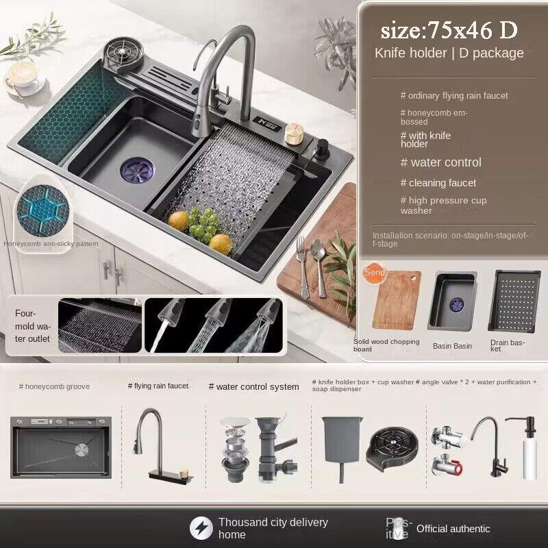 Тисненая сотовая раковина с летающим дождем и водопадом, кухонная раковина ручной работы из нержавеющей стали 304, большая раковина для мытья овощей с одним отделением
