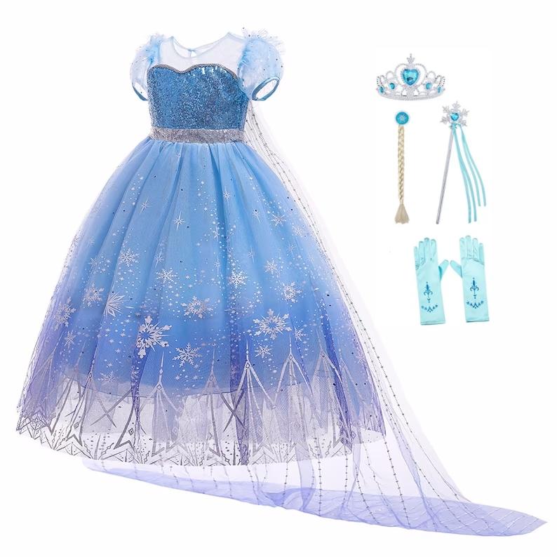 2023 платье принцессы для маленьких девочек, детский костюм Снежной королевы, платье с аксессуарами, косплей, вечеринка на день рождения, Хэллоуин, Рождественский подарок