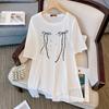 Длинная футболка с коротким рукавом, женская модная футболка больших размеров со свежим бантом и принтом