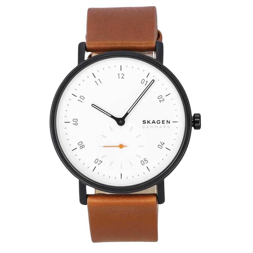 Skagen Kuppel Кварцевые мужские часы с коричневым кожаным ремешком и белым циферблатом SKW6889
