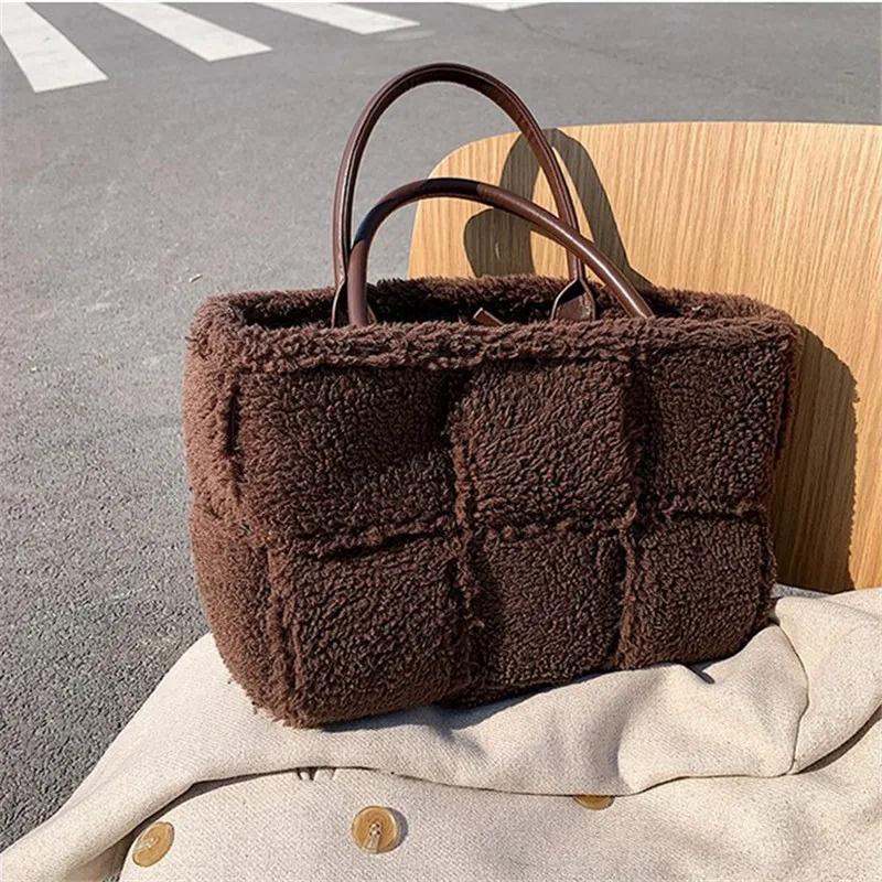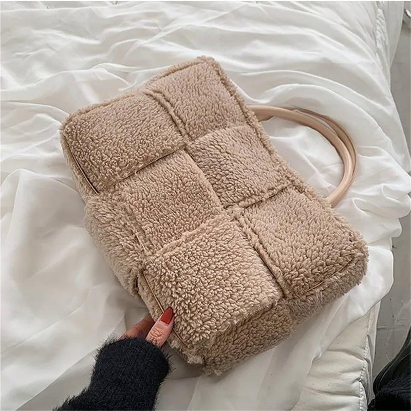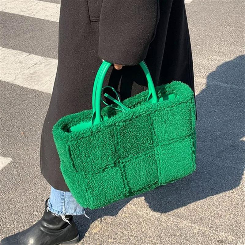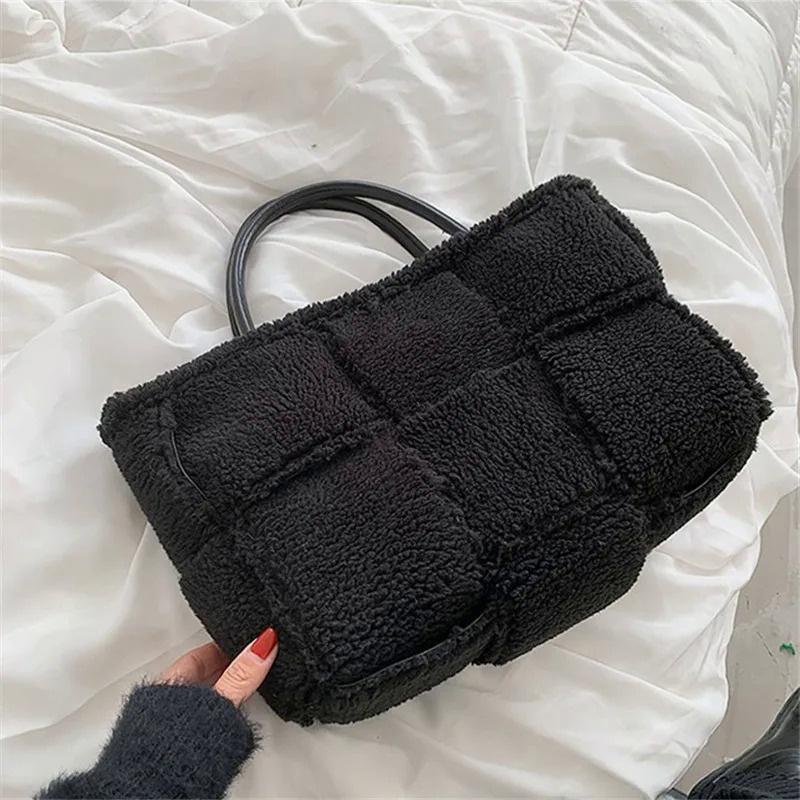 Женская сумка из искусственного меха, тканая большая сумка из овечьей шерсти, роскошные сумки на плечо, женские модные зимние сумки 2023, большая вместительная сумка с верхней ручкой