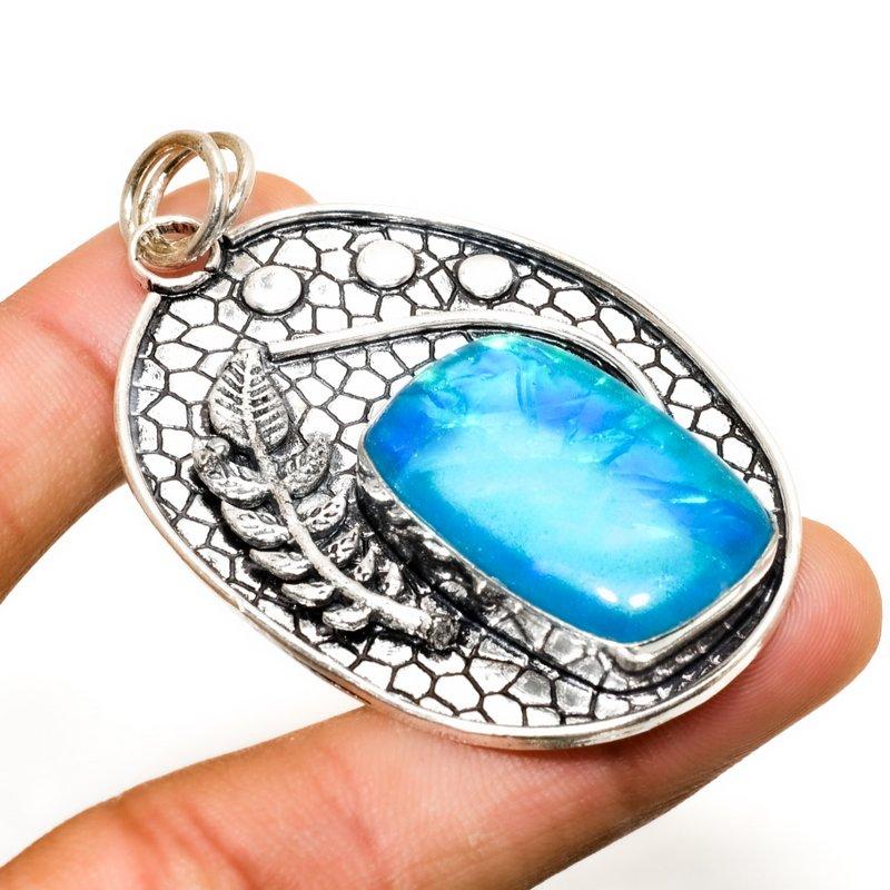 Подвеска из серебра 925 пробы с синим триплетным опалом, ручная работа, 2,34 дюйма