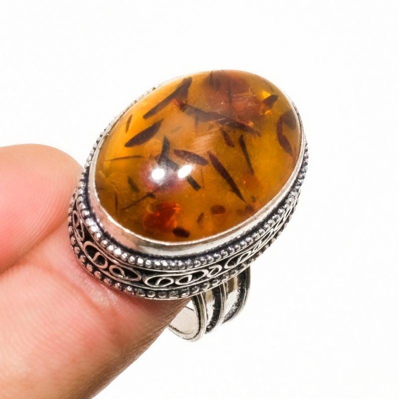 Ювелирное кольцо ручной работы с балтийским янтарем, посеребренное серебро 925 пробы, размер 7