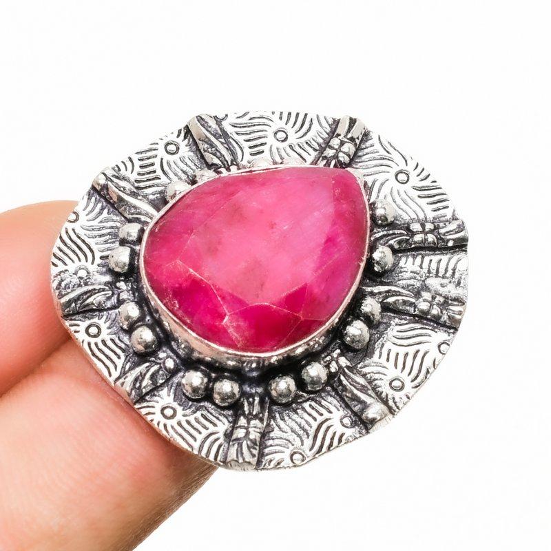 Рубин(Смоделированный) Ювелирное кольцо ручной работы с драгоценным камнем 925 пробы, посеребренное, размер 8,5