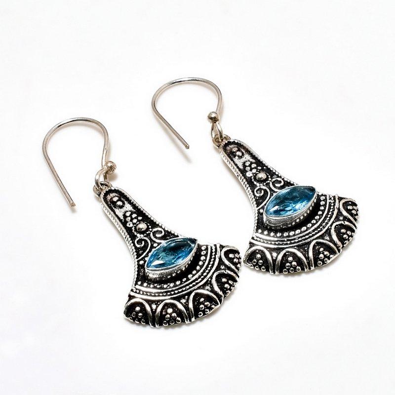 Ювелирные серьги ручной работы с покрытием из серебра 925 пробы, швейцарский голубой топаз, 1,89 дюйма