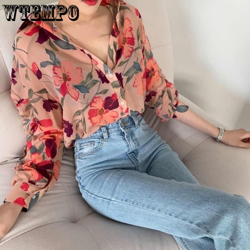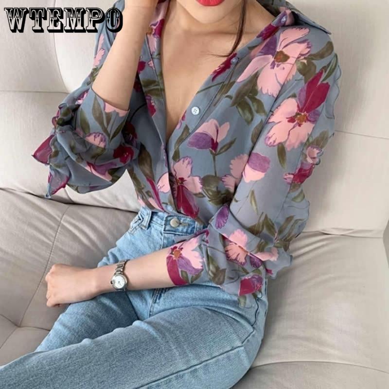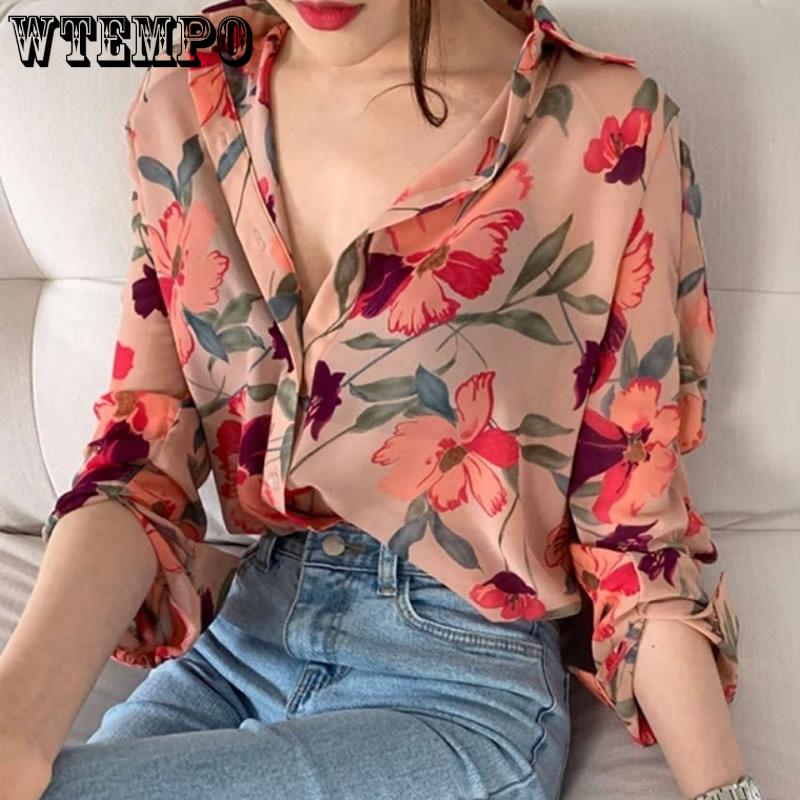 Весенне-осенняя женская рубашка, легкая фрагментированная шифоновая рубашка, маленькая рубашка в западном стиле, универсальная рубашка с длинными рукавами и дизайном
