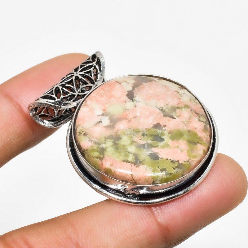 Ювелирный кулон ручной работы с драгоценным камнем унакит, посеребренный 925 пробы, 1,32 дюйма