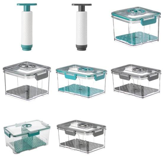 Сохраните свежесть: Оснащенный силиконовым уплотнением и ручным вакуумным насосом, этот вакуумный ящик для овощей обеспечивает герметичное закрытие, что обеспечивает максимальную свежесть продуктов и сохраняет их вкус на длительное время.