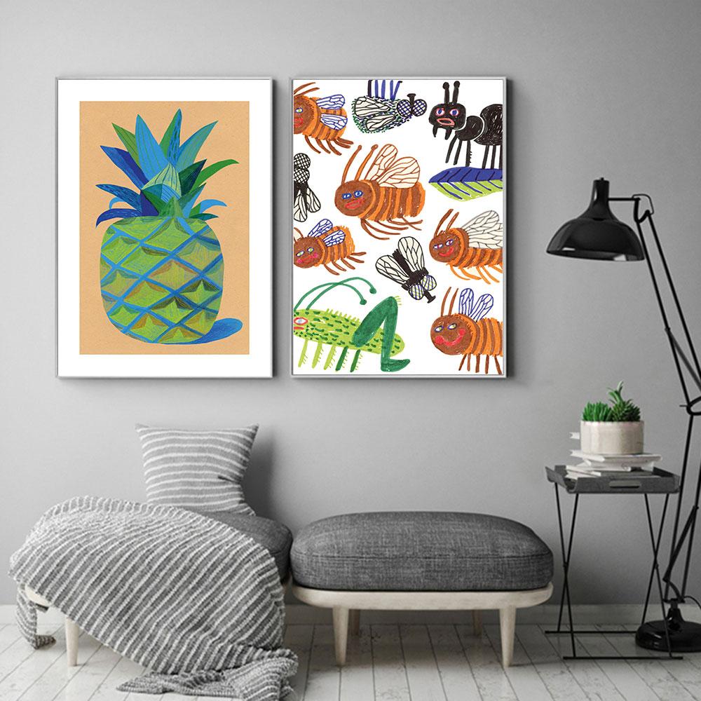 Красочный плакат с ананасом, принт с насекомыми, картина на холсте для детской комнаты, образовательное настенное искусство для детской комнаты, домашний декор, картина для спальни