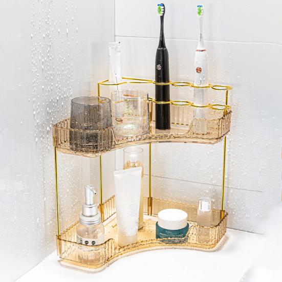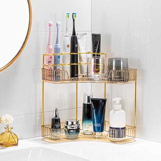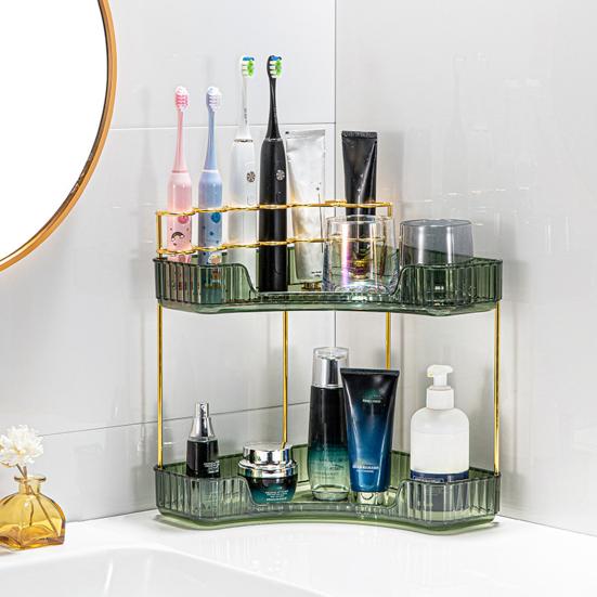 Угловая полка для хранения, двухъярусная съемная стабильная конструкция, органайзер для раковины, столешницы, держатель для зубных щеток, рабочий стол для спальни, уход за кожей