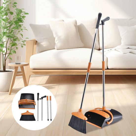 Представляем домашнюю метлу и совок для мусора — удобное и эффективное решение для уборки вашего дома или рабочего места.. Функция крепления позволяет щетке и совку стоять вертикально, обеспечивая более безопасное хранение и поддерживая чистоту и порядок в вашем пространстве.. Этот универсальный набор подходит для различных поверхностей и использования в помещении.