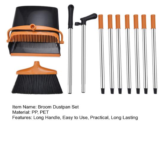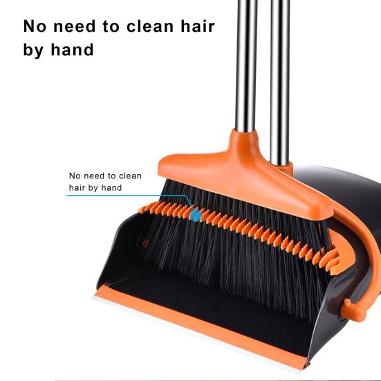 Этот набор, оснащенный самоочищающимися зубьями совка, упрощает процесс уборки благодаря встроенным скребку и расческе, которые легко собирают мусор в совок.. Резиновая кромка совка плотно прилегает к земле, обеспечивая эффективный сбор грязи и мусора.. Этот набор бытовой метлы и совка идеально подходит для использования дома, на кухне, в ванных комнатах, ресторанах, гостиницах и общежитиях.