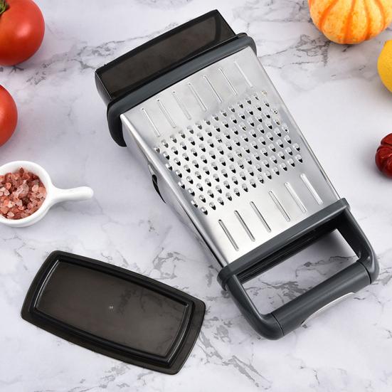 Эта терка оснащена удобным ящиком для хранения и позволяет собирать нарезанные фрукты и овощи прямо в коробку для удобного приготовления.. Съемная крышка упрощает очистку и делает ее более удобной в использовании.. Эта овощечистка идеально подходит для натирания сыра, огурцов, моркови и т. д. и станет универсальным дополнением к любой кухне.. Почувствуйте легкость и эффективность терки уже сегодня!
