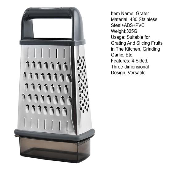 Многоцелевое использование: Идеально подходит для натирания сыра, а также твердых и мягких овощей, таких как огурцы, капуста, морковь, лук, картофель и кабачки.. Улучшите свои кулинарные творения с помощью этого универсального кухонного инструмента.
