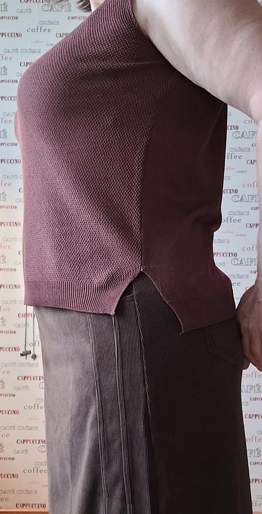 🤎🤎🤎 Жилет. 🤎🤎🤎 Заказ 04.04 - 11.05. Покупала за 480 руб. Размер 5XL. Цвет *коричневый*. 🔹️Жилет подбирала к леопардовой сеточке с длинными рукавами, носить сверху. Мне не очень понравился, особенно цвет. 🔹️Покупала максимальный размер из-за длины и того, что сайт всегда шлёт маломерки. ...Я не ошиблась! Бирок нет, только на пакете наклейка, есть в шве бумажка с циферкой *3* и всё... что означает эта цифра никому не ведомо. 🔹️Мои замеры вещи что прислали: 🔸️ОГ - 106 см, в таблице д.б. 125 см. (- 19 см❗️) 🔸️Длина 58 - 63 см, в табл. д.б. 65 см. 🔹️Жилет тонкий, скорее это майка, ткань дряблая и не оч. приятная, швы так себе. Тянется сильно, но имеет неопрятный вид изначально. Со временем сильно закошлатиться, я уже знаю, брала что-то на этом сайте из такой нитки. Ещё мне не понравился оттенок и затхлый запах от *новой* вещи. 🔹️Все детальные фото собрала в слайдшоу. Решать вам, может в другом цвете смотрится получше. Но повторюсь, не понравилась ткань, какая-то дешманская, если бы не это, то простила бы жилету всё. Скорее всего носить не буду. Хорошо, что не заказала в других цветах после хвалебных обзоров других покупателей, а решила дождаться этот... 🔹️🔹️🔹️Спасибо. P.S. ...Тряпку разрезала за полный возврат. К тому же обнаружила еще одно несоответствие.. другая модель, чем на промофото. Там лямочки неширокие, аккуратненькие, уже по ширине, а в это топе широченные, жилетом как на промо не смотрятся. Ну еще и цвет ужасный вживую, на промо морозный шоколад, спокойный, благородный. А этот топ темно-рыже-коричневого цвета... я не такой выбирала.