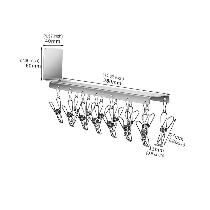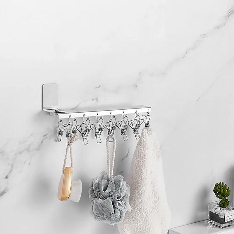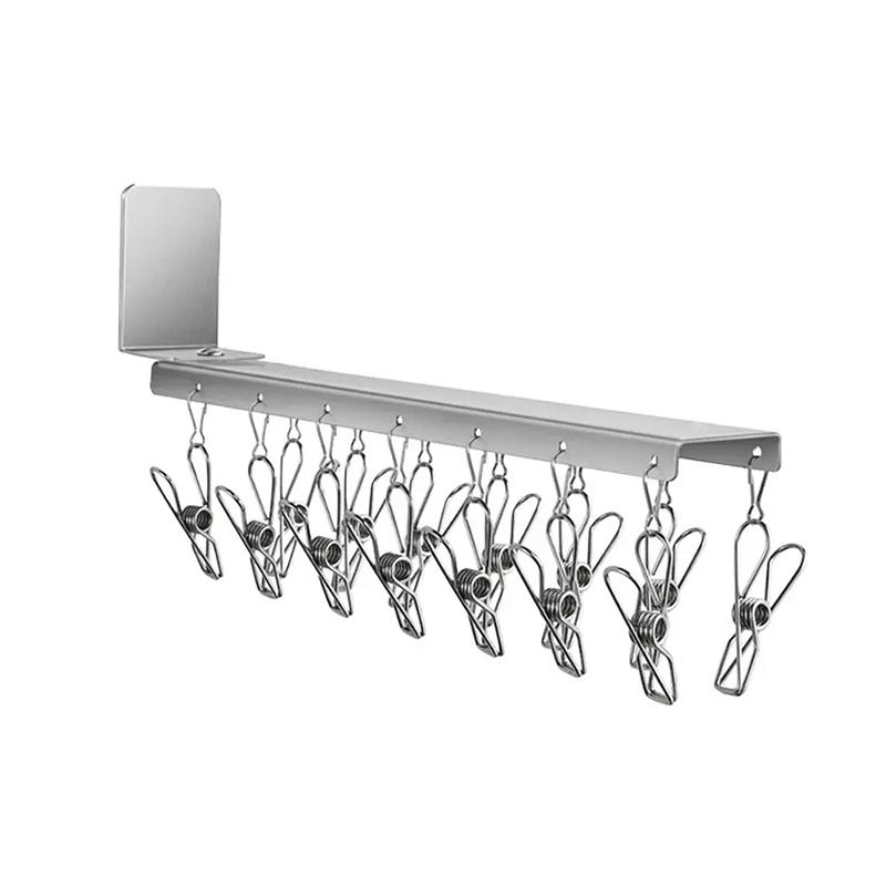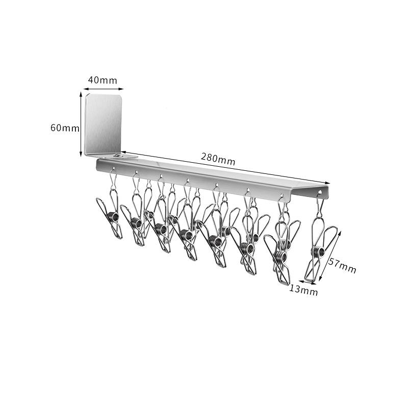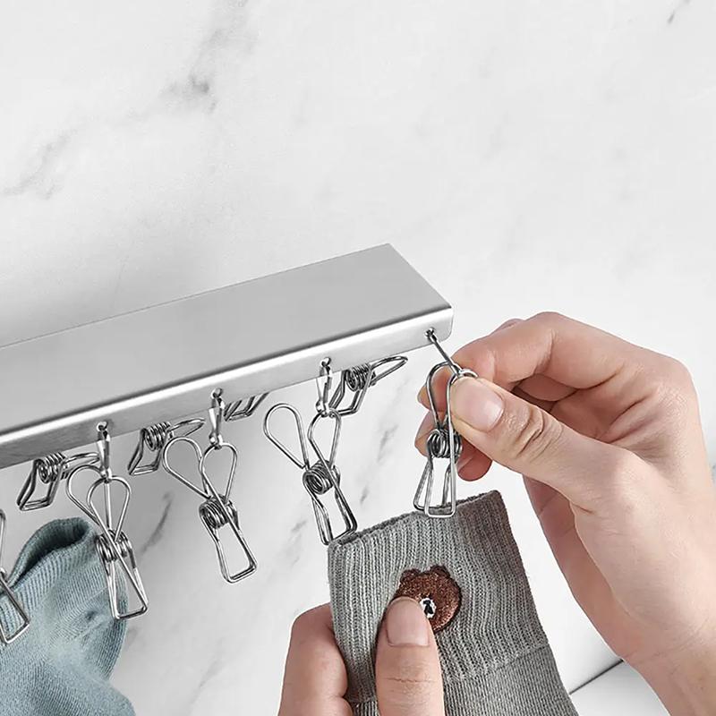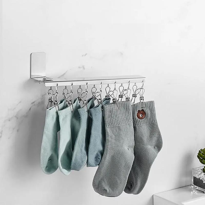 Вешалка для носков из нержавеющей стали, настенная подвеска для балкона, зажим для сушки одежды с несколькими зажимами, без перфорации, вращающийся, ветрозащитный зажим для детских носков