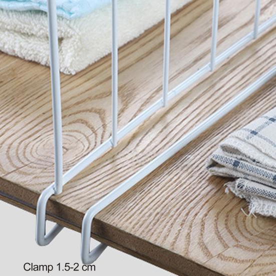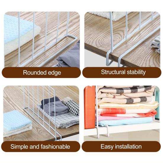 Благодаря удобной конструкции зажимов эти перегородки просты в использовании — просто закрепите их на полке.. Усиленный нижний зажим гарантирует длительное использование без поломок.. Эти перегородки, подходящие для пластин толщиной 1,5–2 см, могут разделить пространство для хранения различных предметов, таких как одеяла, кошельки, одежда, простыни, обувь, сумки и вешалки.