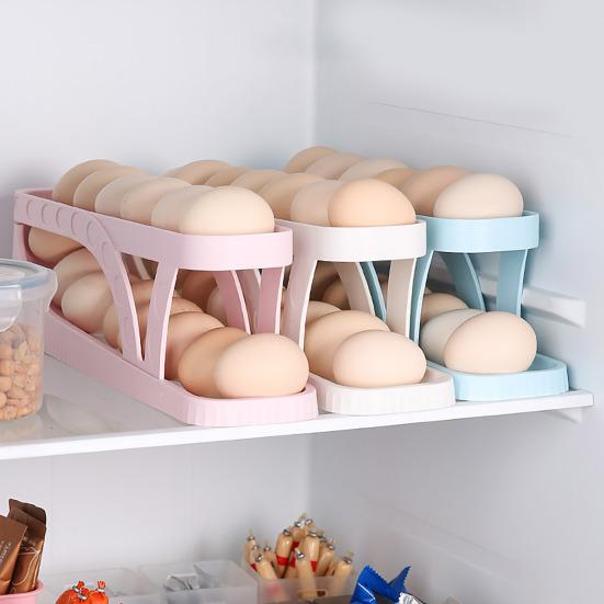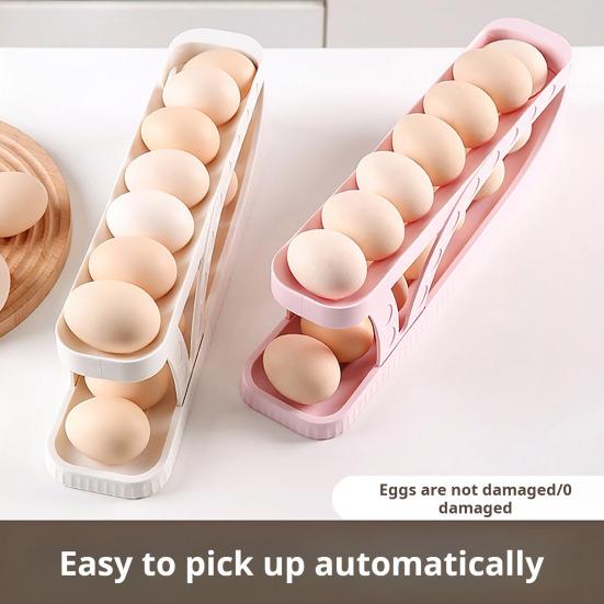 Наша полка для яиц в холодильнике, изготовленная из высококачественных материалов, прочная и долговечная, что обеспечивает длительное использование.. Инновационная конструкция автоматического перекатывания яиц предотвращает застревание яиц, аккуратно перекатывая одно яйцо за раз, а остальные плавно перемещаются вперед.. Благодаря дополнительной защите ограждения и углубленным канавкам на направляющих для яиц ваши яйца будут надежно храниться и не разобьются.