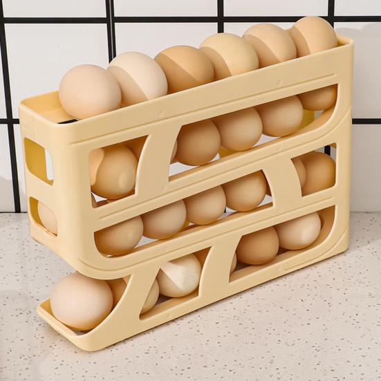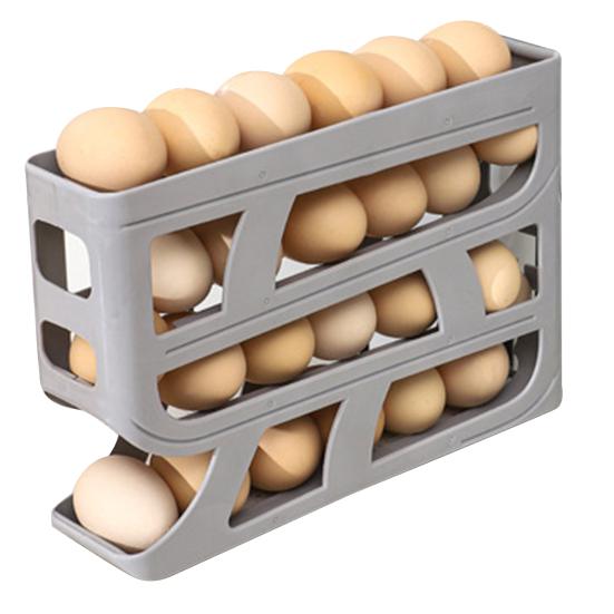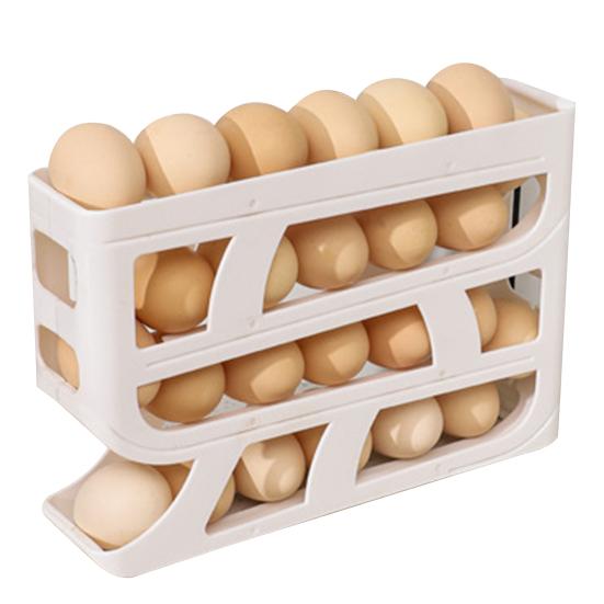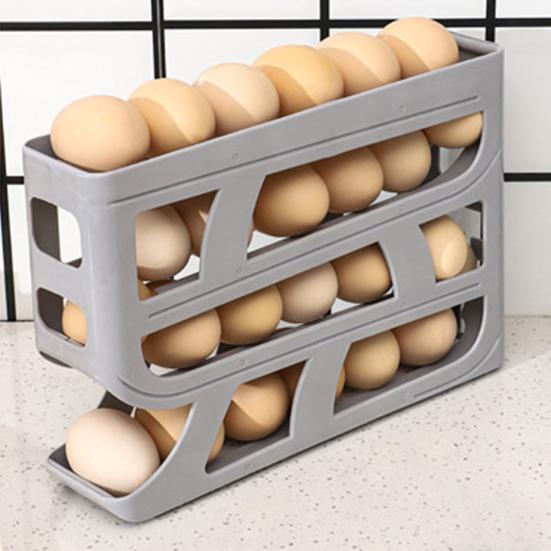 Эта четырехслойная подставка для яиц вмещает около 30 яиц, что позволяет сэкономить место для вашего холодильника или кухонной стойки..