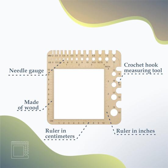 Этот инструмент не только поможет вам проверить размеры крючка и иглы, но также имеет удобную линейку в дюймах и миллиметрах.. Это позволит вам легко измерить размер вязаных вещей, будь то свитер или носки, над которыми вы работали.