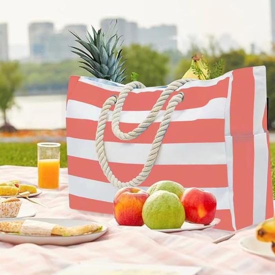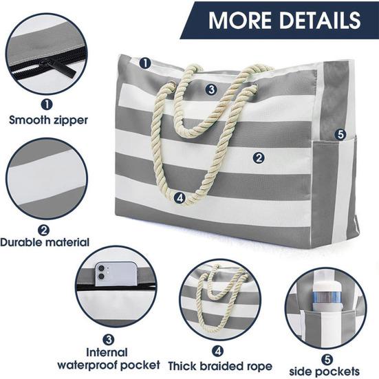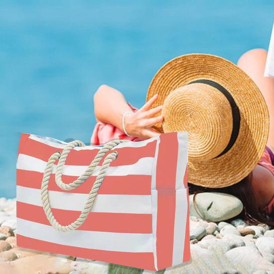 Стильный дизайн: Подчеркните свой пляжный стиль с помощью нашей полосатой пляжной сумки профессионального дизайна с одной внешней застежкой-молнией сверху, двумя боковыми карманами и удобной веревочной ручкой для удобной переноски.. Организуйте свой порядок с помощью 1 внутреннего кармана и наслаждайтесь дополнительной защитой 2 слоев ткани.