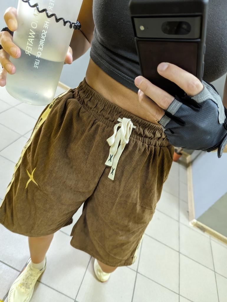 Удлиненные шорты на лето😀✌️ В общем и целом, брала для мужа, оставила себе , ходить в зал. Смотрятся прикольно Материал похож на тонкий вельвет. Я взяла коричневые Сбоку есть вышивка. По бокам глубокие карманы На поясе резинка и шнурок. У меня размер 42-44, на мне размер XL Доставка за 3 недели. Рекомендую ♥️