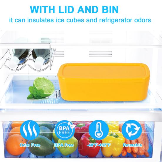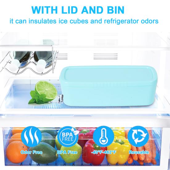 Герметичная съемная крышка: Попрощайтесь с утечками и грязными морозильниками! Наш лоток для кубиков льда оснащен герметичной крышкой, которая сохраняет вкус и чистоту вашего холодильника.. Вы можете наслаждаться чистым льдом без каких-либо загрязнений.