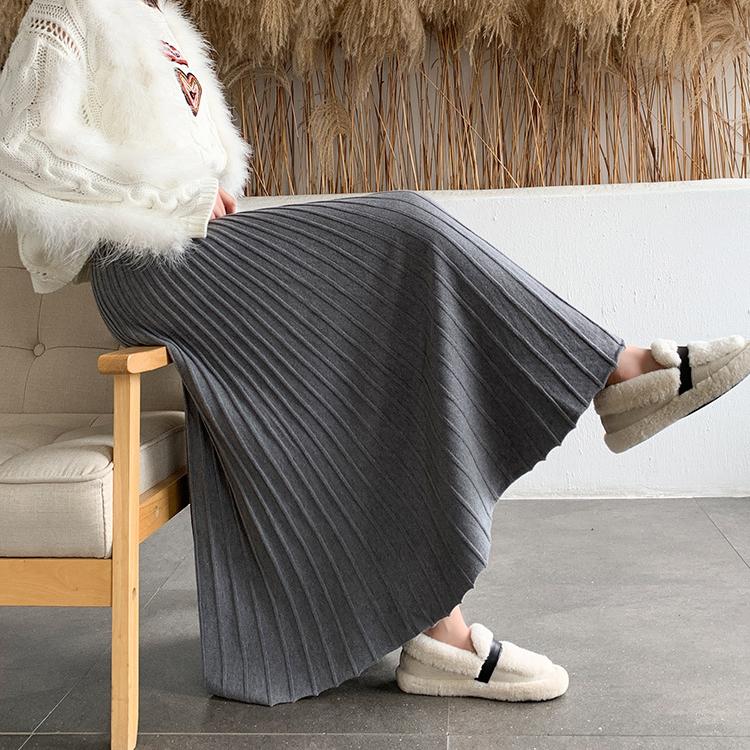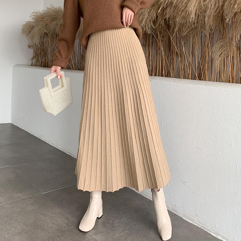 Трикотажные длинные юбки-миди женские с эластичной резинкой на талии, элегантные, осенне-зимние, трикотаж трапециевидной формы, полосатая повседневная винтажная юбка