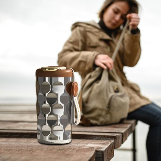 Изолированная кофейная кружка на 410 мл. Вакуумная термокружка из нержавеющей стали с экраном дисплея. Герметичная крышка. Легкая съемная кружка.