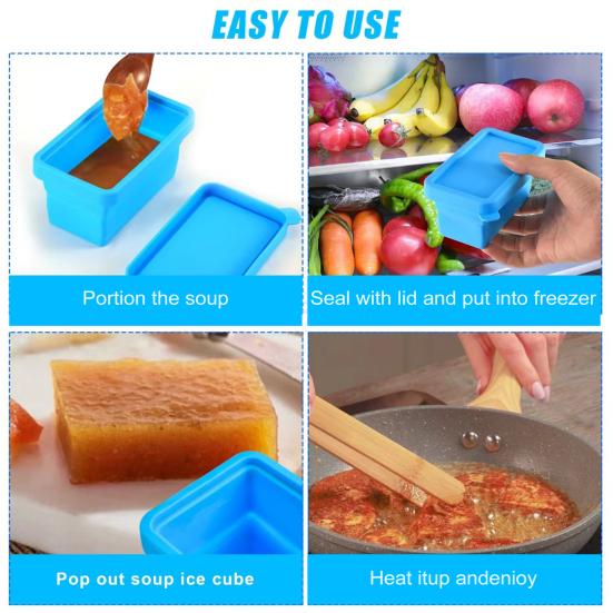 1/2 шт., силиконовый морозильный лоток с крышкой, пищевой 250 мл, легкосъемный лоток для хранения продуктов, не содержащий BPA, штабелируемый контейнер для морозильной камеры для супа для хранения