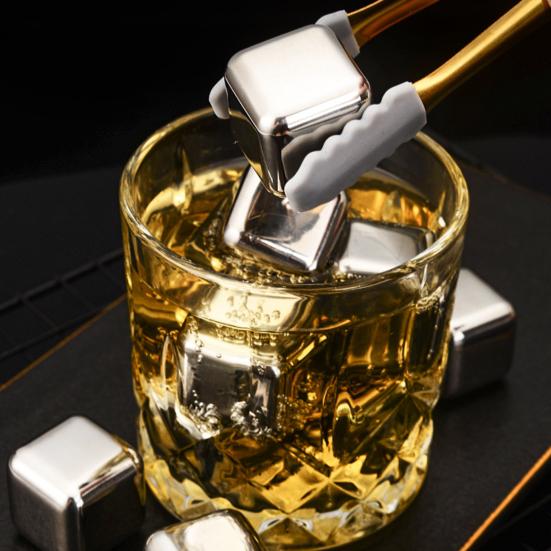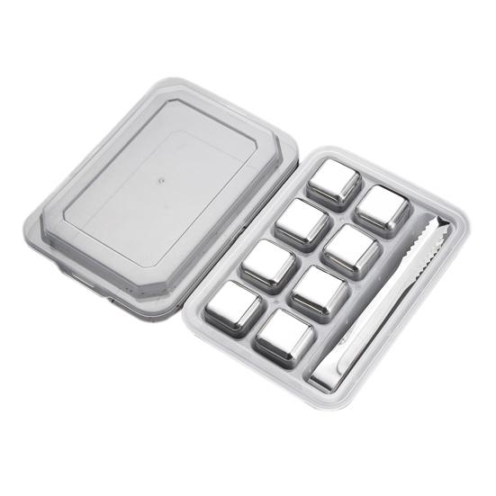 8 шт. кубики льда с щипцами из нержавеющей стали. Коробка для хранения. Камни для виски. Многоразовые охлаждающие камни для напитков. Пищевые металлические кубики для виски.
