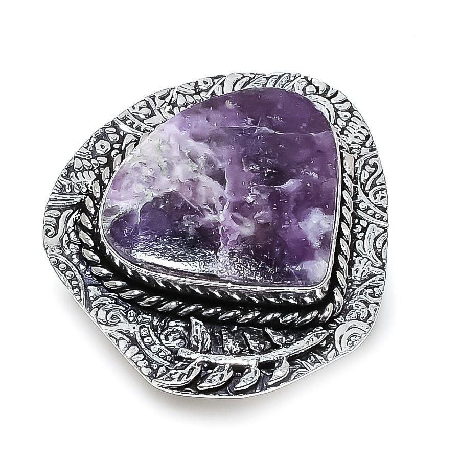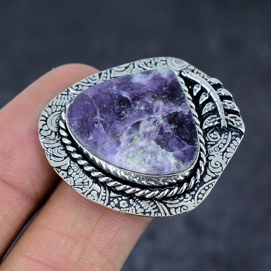 Ювелирное кольцо из стерлингового серебра 925 пробы с натуральным драгоценным камнем лепидолитом, размер 8 Z6o22