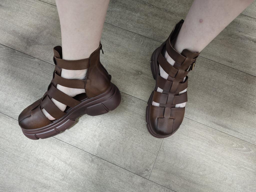 Римские сандалии Johnature из натуральной кожи на толстой подошве, универсальные женские туфли на платформе из воловьей кожи с круглым носком — купить товар онлайн с бесплатной доставкой по всему миру!
