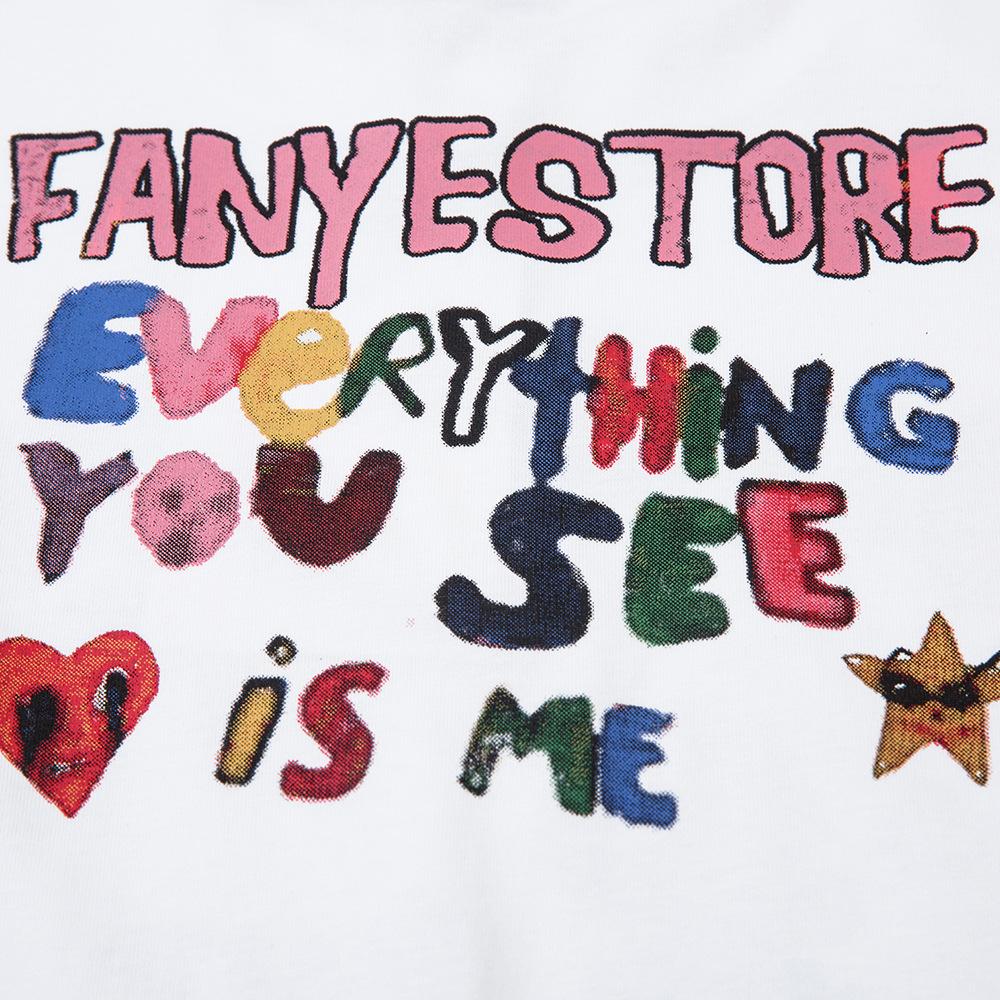 Футболка с короткими рукавами с забавным граффити и мультяшным принтом для модных мальчиков в стиле хип-хоп, ленивая летняя повседневная футболка из чистого хлопка с половиной рукавов