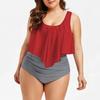 Большой размер женщины две части взъерошенный купальник бикини высокой талией танкини купальный костюм