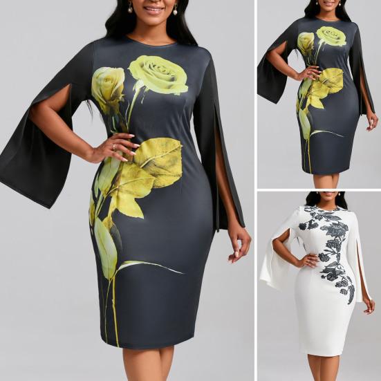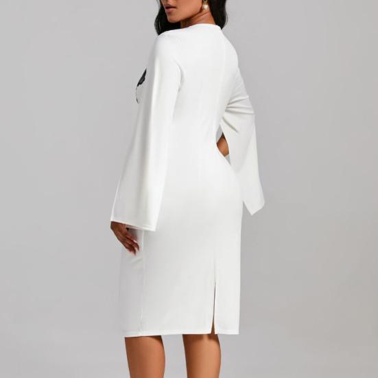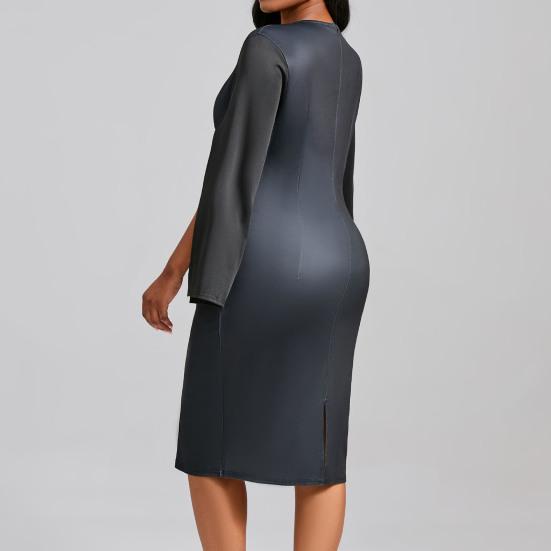 Представляем наше элегантное и универсальное платье с круглым вырезом, идеально подходящее для любого случая.. Это платье средней длины имеет длинные рукава с разрезами, дизайн, подчеркивающий талию, и облегающий крой, подчеркивающий ваши изгибы во всех нужных местах.. Изготовлен из высококачественной полиэфирной ткани, он мягкий, легкий и подходит для осенней, весенней и зимней одежды.