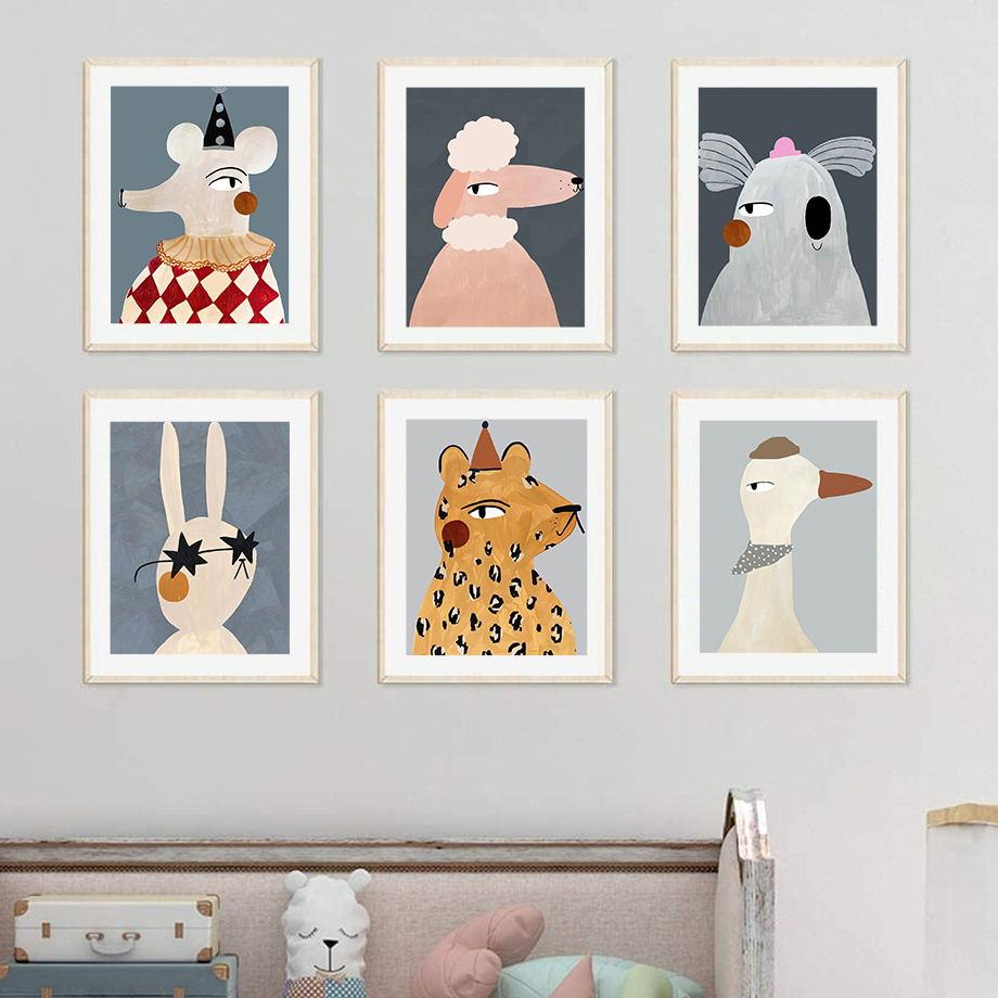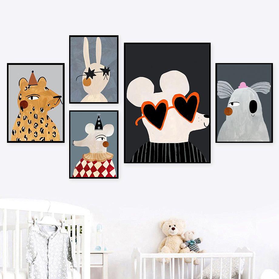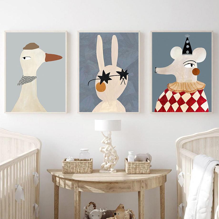Мультфильм мышь кролик утка леопард овца свинья постер скандинавский настенный художественный принт холст картины детские картинки для декора детской спальни
