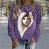 Женский осенний новый пуловер с длинным рукавом, модная футболка с 3D принтом кошки, уличный повседневный женский свитер с круглым вырезом для девочек, повседневный топ