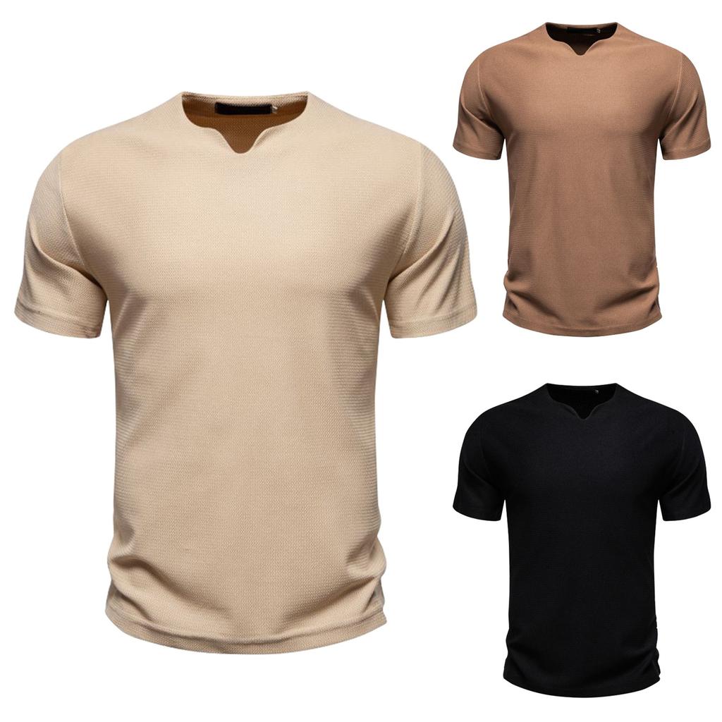Мужские летние футболки с v-образным вырезом и коротким рукавом, мужские летние повседневные модные дышащие футболки с короткими рукавами