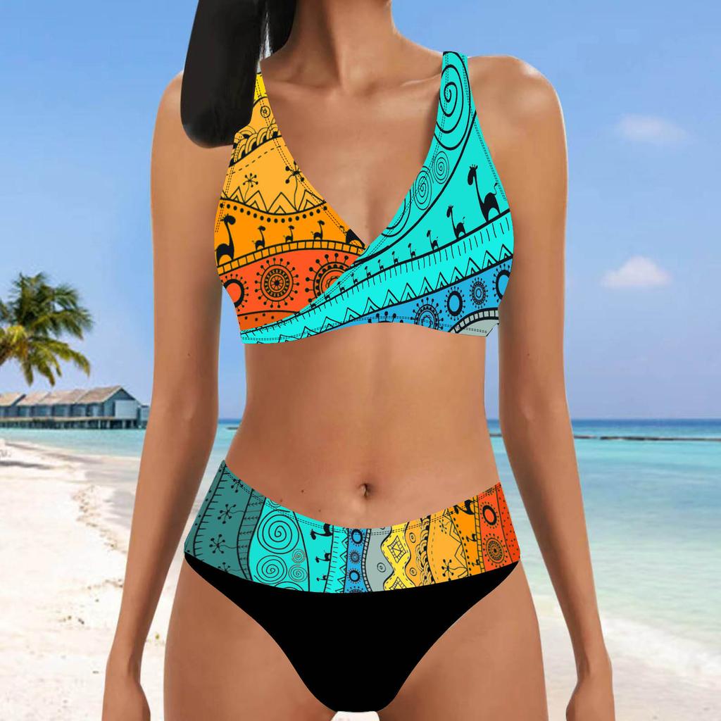 Модное бикини с принтом, женские купальники, летний купальный пляжный костюм, купальники, женские сексуальные бикини, купальник из двух частей
