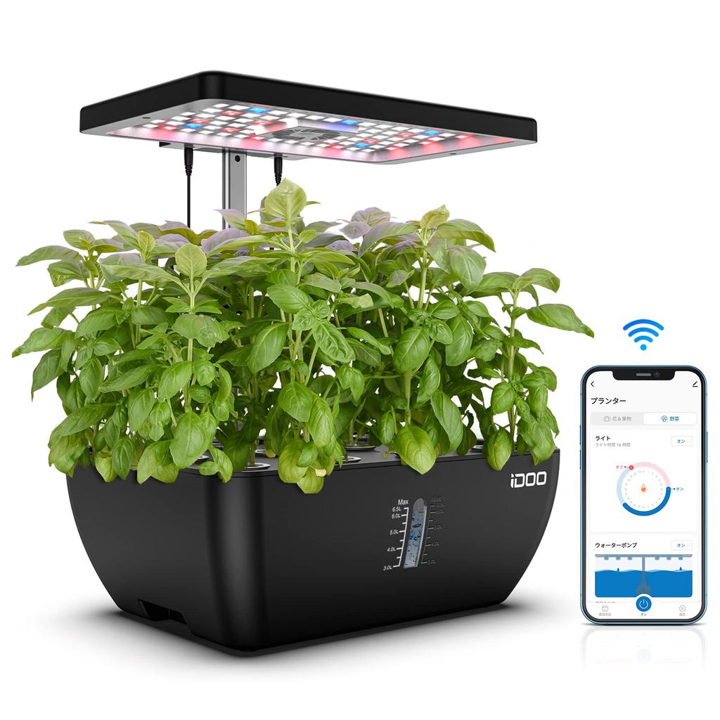 ◀Высоту светодиодной панели комплекта для гидропонного выращивания можно регулировать до 36,8 см.. Высоту можно регулировать в зависимости от роста растения, поэтому вы можете управлять им на соответствующей высоте от прорастания до роста.. Растения поглощают световую энергию светодиодов, способствуя росту, и вы можете одновременно выращивать до 12 растений.. После сбора урожая можно сразу приступать к выращиванию других растений.. Поскольку вы можете выращивать несколько видов овощей одновременно, вы можете получать удовольствие от выращивания самых разных растений.