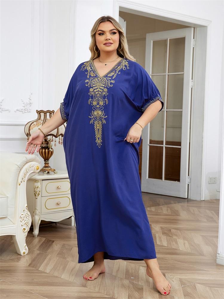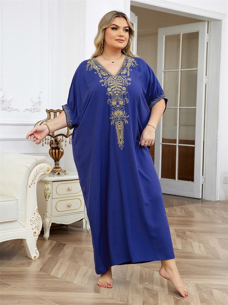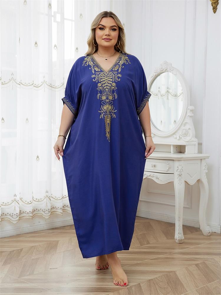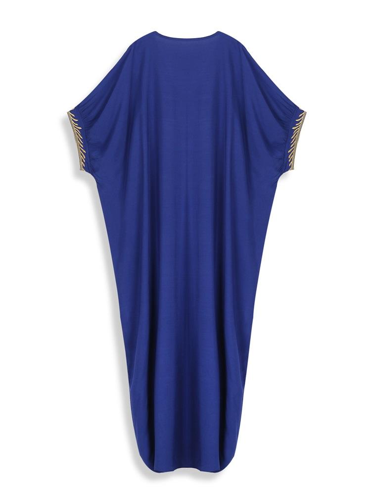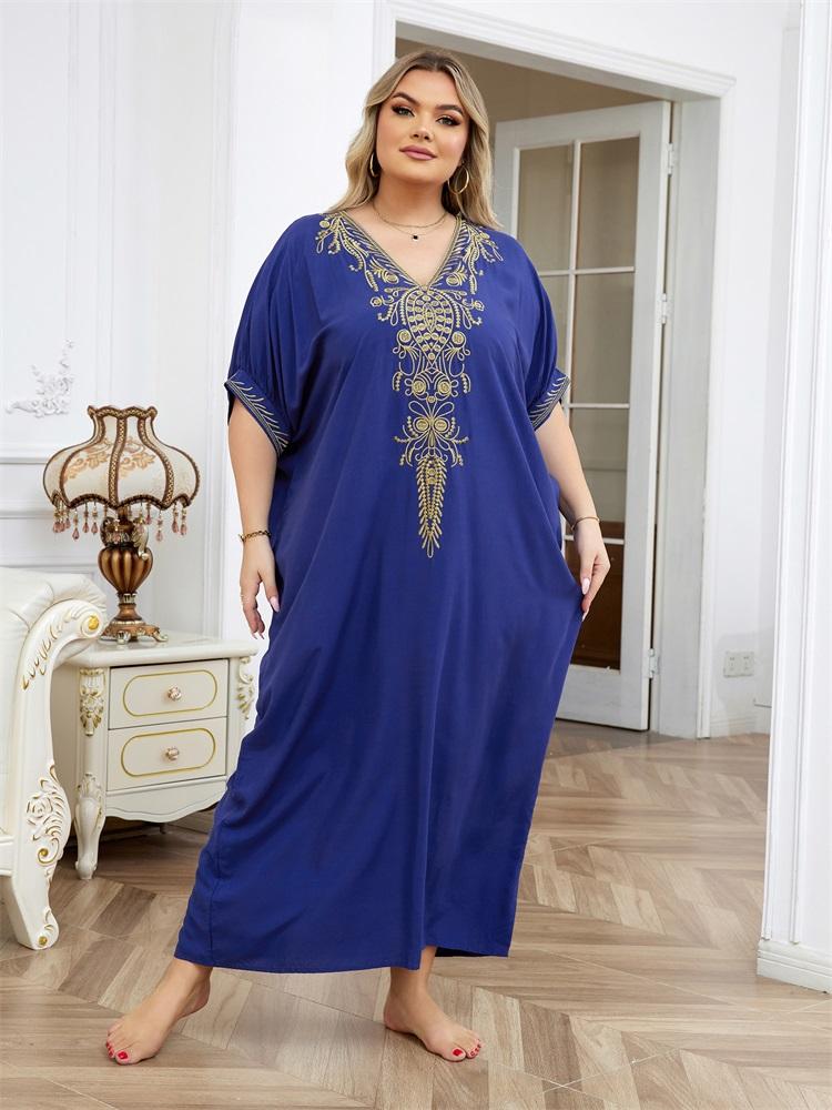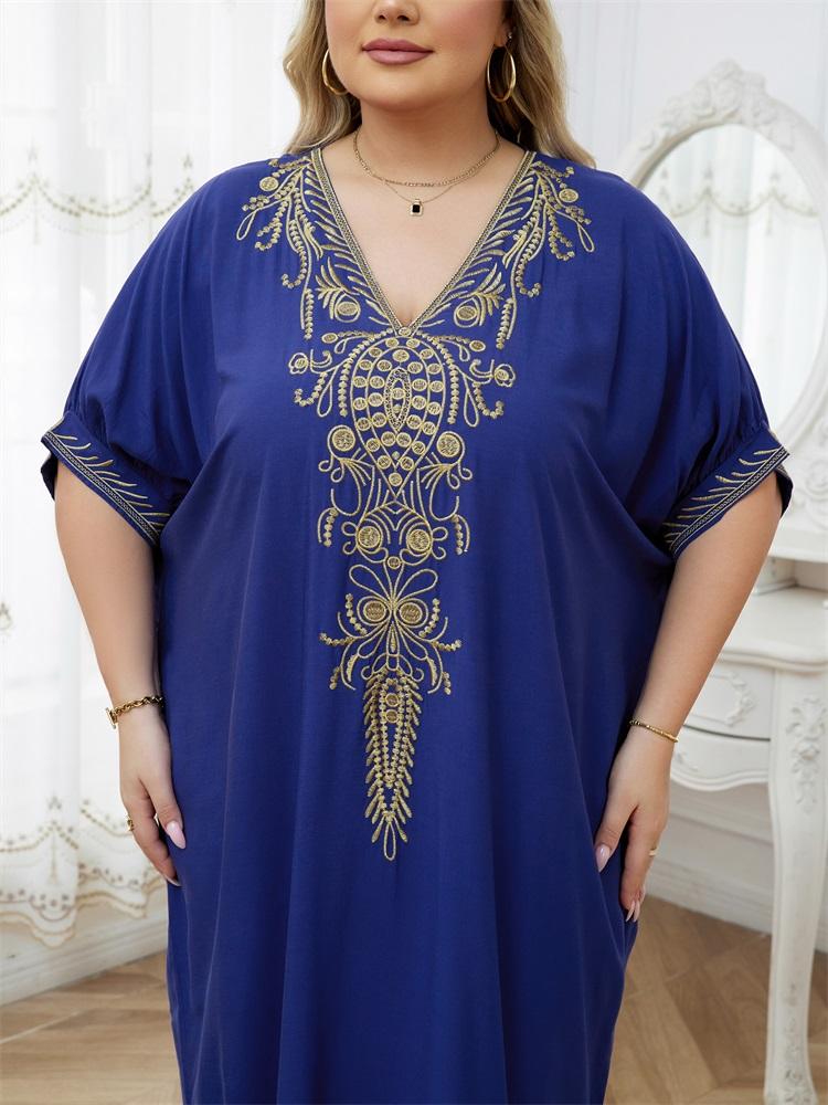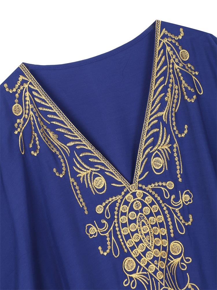 EDOLYNSA Элегантный вышитый плюс размер с рукавами «летучая мышь», темно-синий кафтан 2024, женская летняя пляжная одежда, купальник, накидки, винтажное платье-халат Q1598
