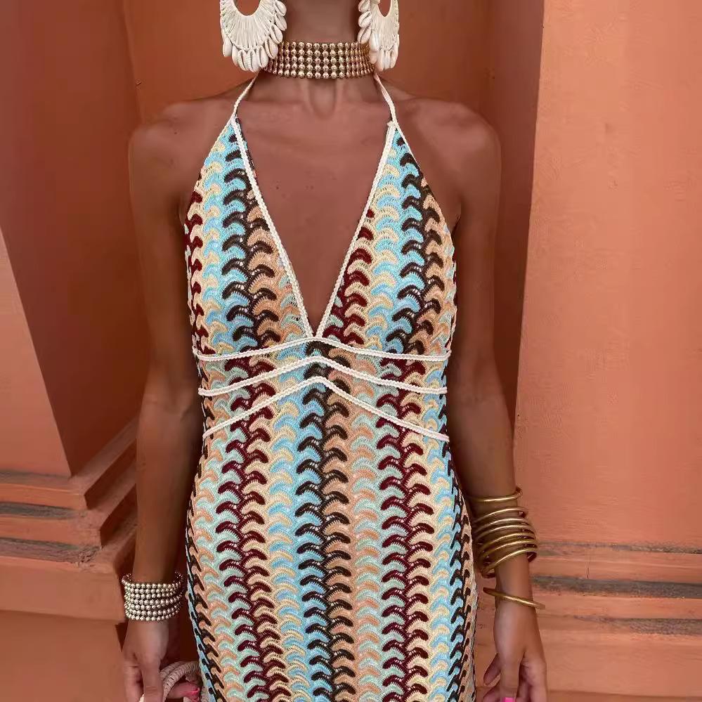 Летние платья с глубоким v-образным вырезом для женщин, сексуальное платье с высокой талией, без рукавов, с открытой спиной, с лямкой на шее, Vestidos, новинка 2024 года, элегантное женское платье для выпускного вечера