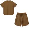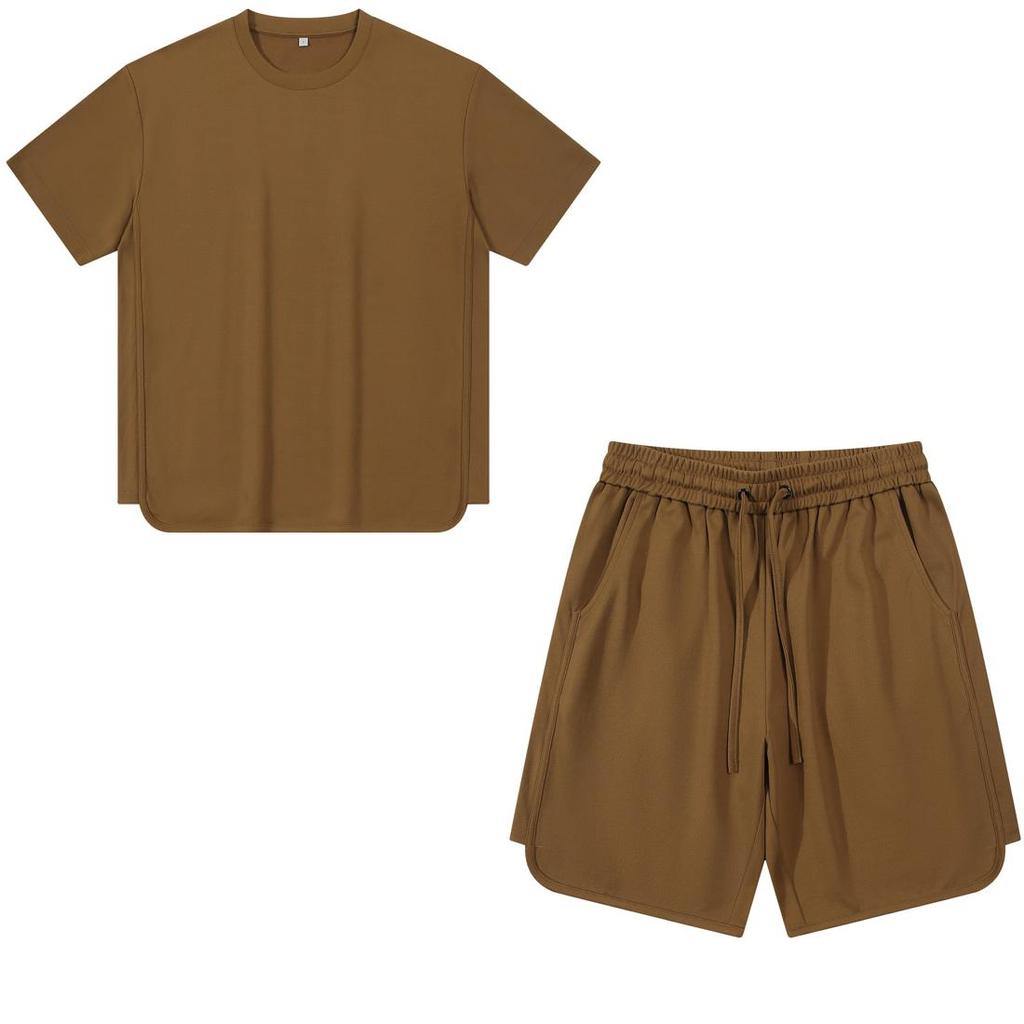 Мужской комплект из двух предметов: верх-нижний, хлопок, полиэстер, футболка с короткими рукавами, четверть брюки на шнурке, однотонные свободные рубашки и шорты, повседневная спортивная одежда